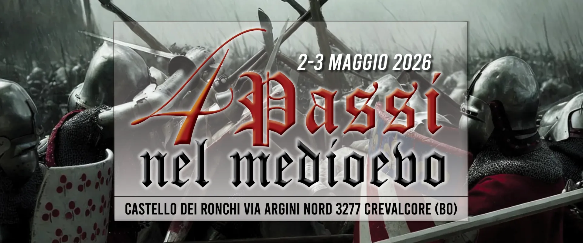 Preparatevi a un vero e proprio salto nel tempo. Il 2 e 3 Maggio 2026, il suggestivo scenario del Castello dei Ronchi a Crevalcore si trasforma in un teatro di storia, coraggio e tradizione. Tra accampamenti militari e scene di vita quotidiana, rivivremo l'atmosfera del tardo XIV secolo e la leggendaria Battaglia di Crevalcore.